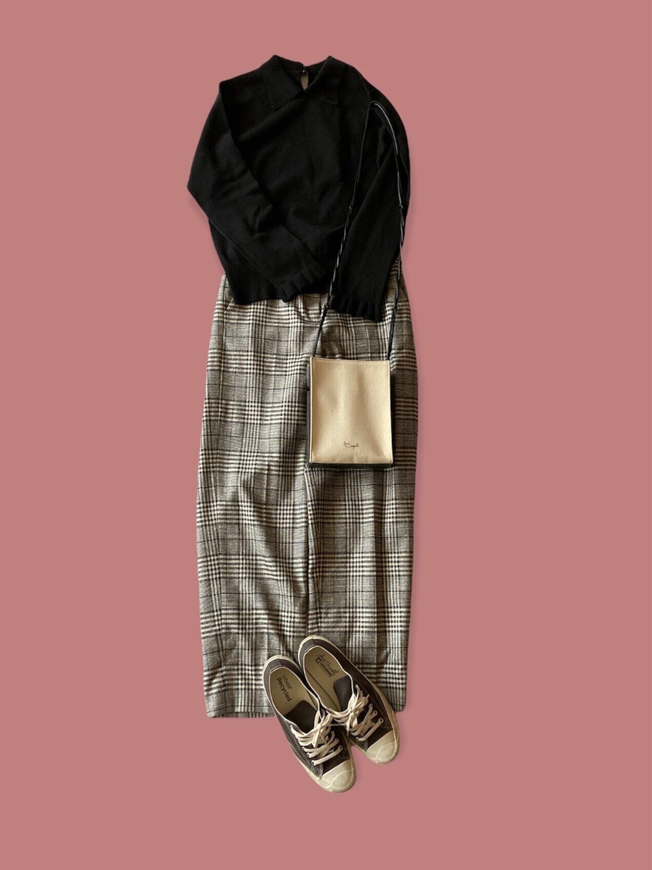秋に履きたくなる、チェック柄のパンツもマスト。今年は、エレガントなえりつきニットを合わせてレトロに寄せるのが気分です。定番カラーでも、アイテムしだいで新鮮な気分に浸りながら着こなすことができます。