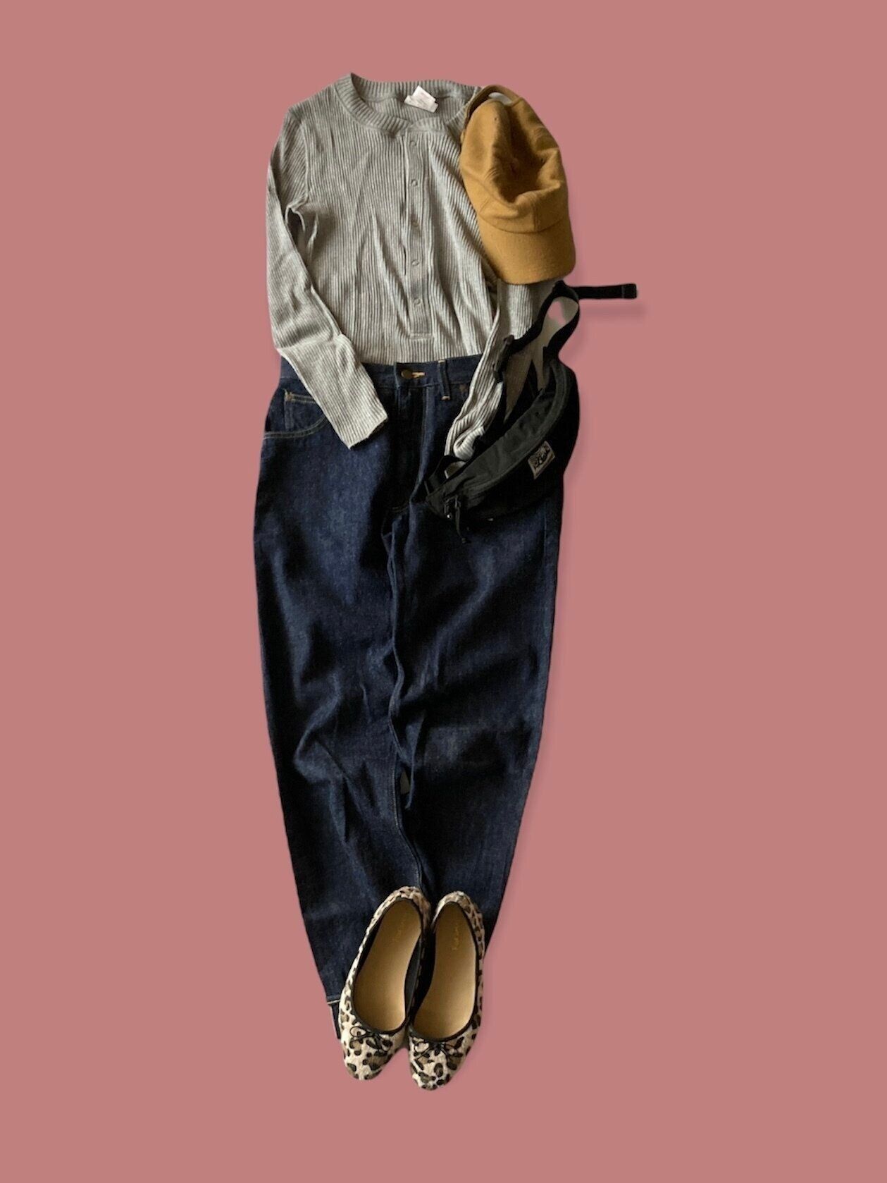 デニムに、シンプルなトップスではものたりない…と感じるなら、秋らしさがダイレクトに伝わるレオパード柄のシューズを合わせてみましょう。ウール素材のキャップを羽織と、秋らしくて活動的なカジュアルコーデが叶います。