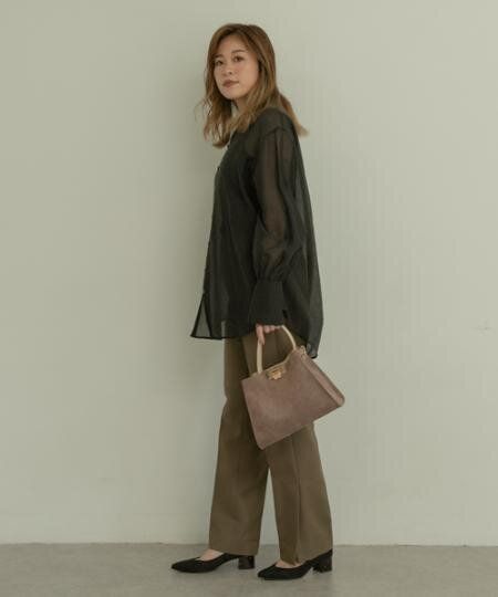 透け感があることで暗めの色味でも重たくなりすぎず女性らしいコーデになります。