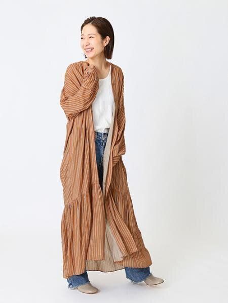 1枚は持っておきたい薄手のロングアウター。綿素材でカジュアルさもありつつ、ロング丈なのでラフになりすぎず、どんなスタイルにもハマります。