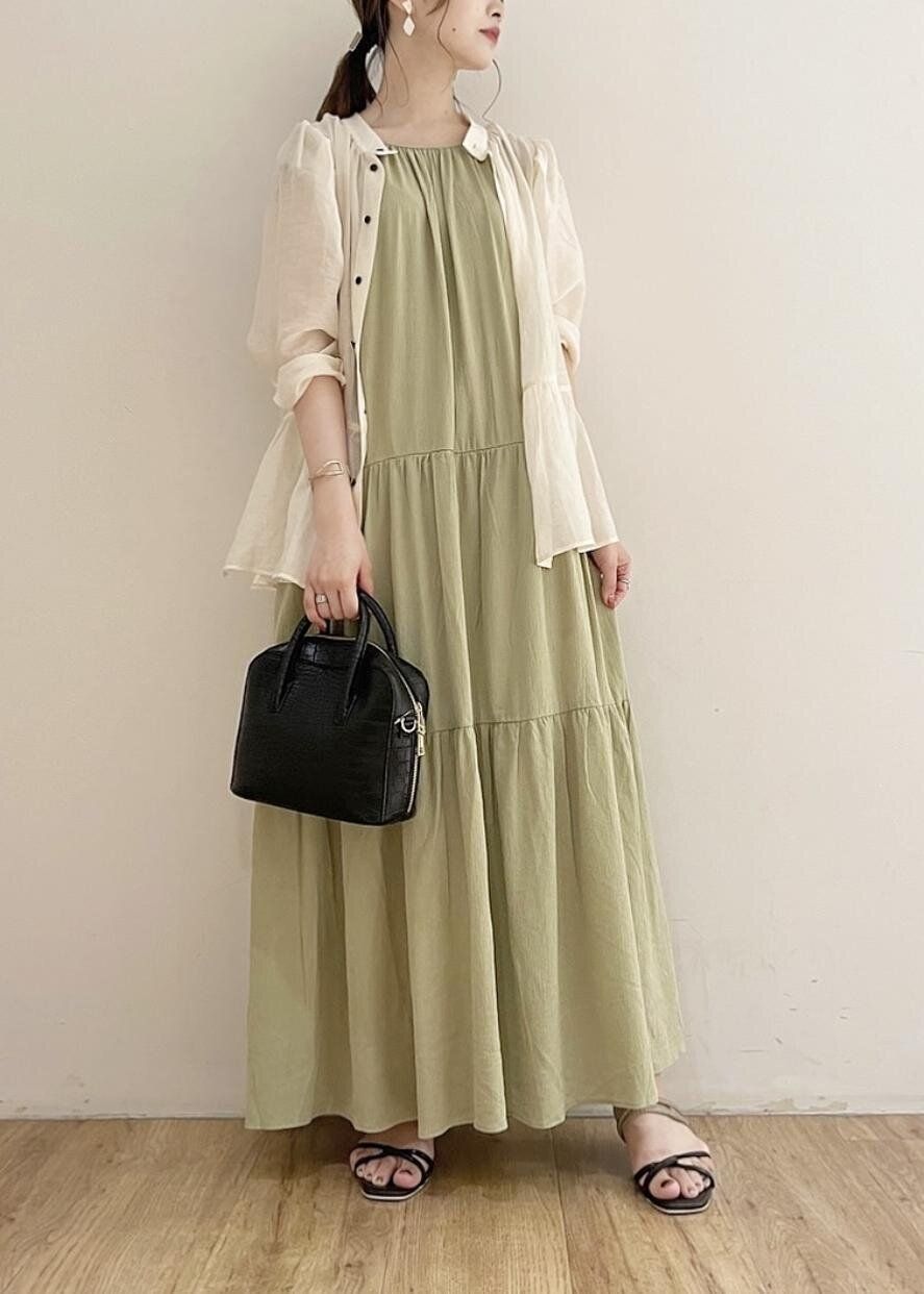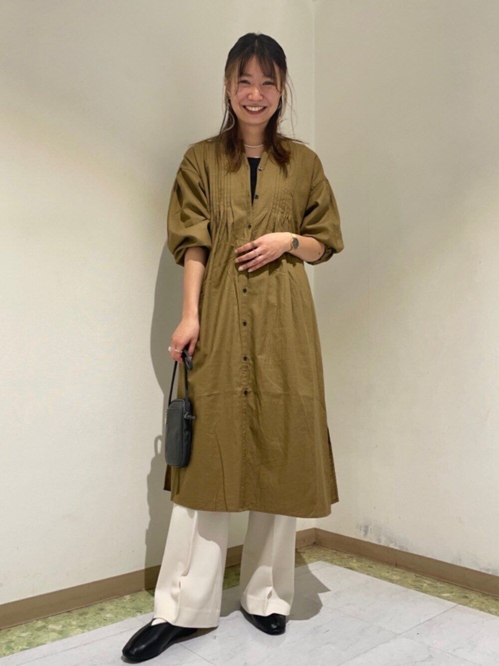 こちらのワンピースはコットン素材を使用し、春の柔らかさを感じさせるアイテムです。これにデニム生地のジーンズを合わせると、ラフな雰囲気がぐんっとアップします。