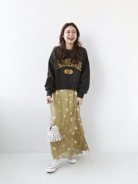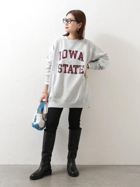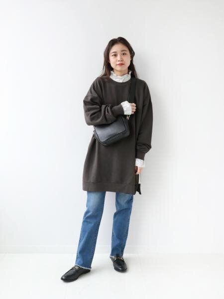 季節の変わり目に役立つスウェット。ゆったり目のシルエットを選ぶことで今っぽい雰囲気に。