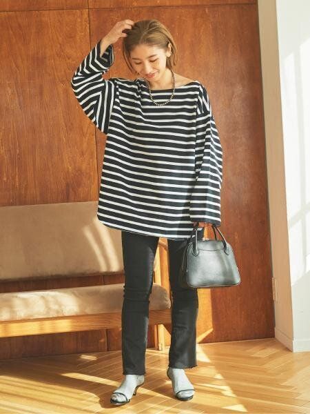 ボーダーは黒地のものを選ぶことでシャープな印象に。アクセサリーはシルバーを選ぶことでより大人っぽいスタイルになります。