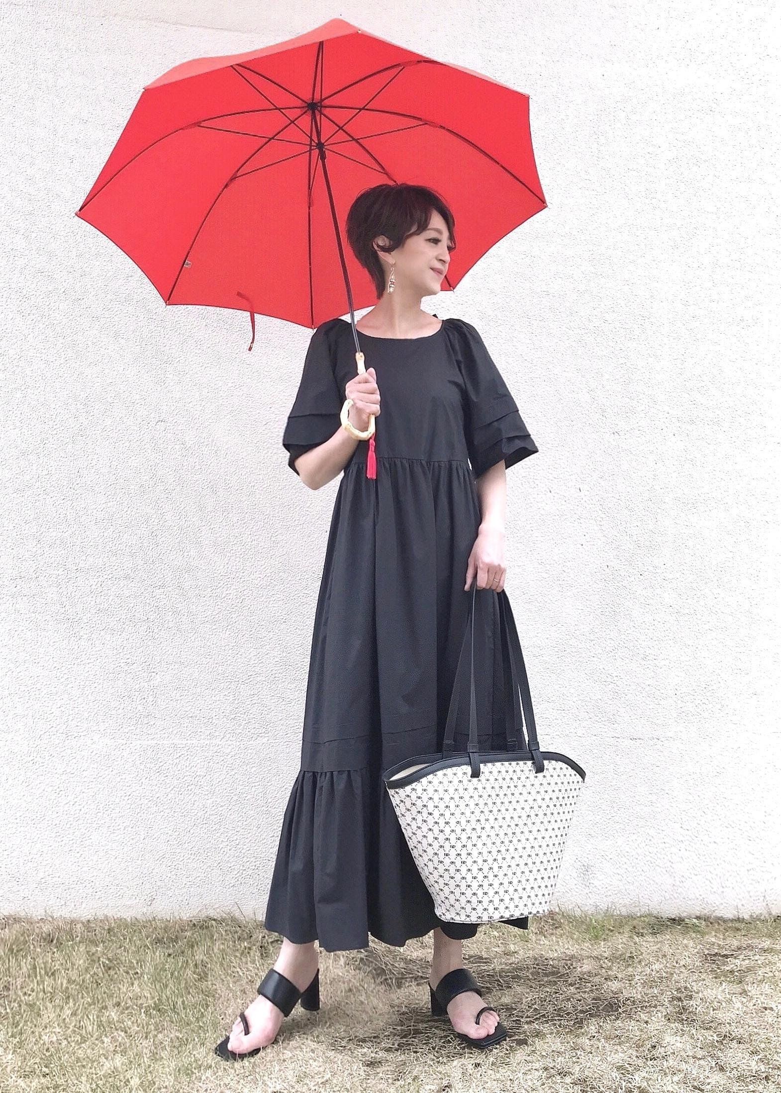 傘を主役にした簡単オシャレコーデ