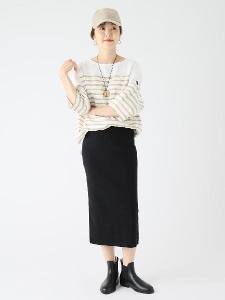 雨汚れが気になる雨の日は、黒のボトムスがおすすめ。ボーダーのカットソーと合わせることで、カッチリし過ぎないきれいめカジュアルスタイルに。