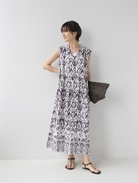 身につけるアイテムが少なくなりがちな真夏のスタイルも一枚で様になるのが柄ワンピース。
