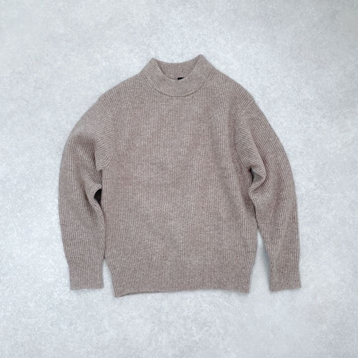 こちらメンズニットですが色味がかわいくて着てみたら良い感じだったので購入しました。着た感じふわふわしていてとても暖かいです。私はボトムにinすることがあるのでSサイズにしました。ゆったりと着たい方はMサイズでも良いかもしれません。メンズのアイテムはレディースとはサイズ感が違うと思うので試着してサイズ感を確かめるのをおすすめします。