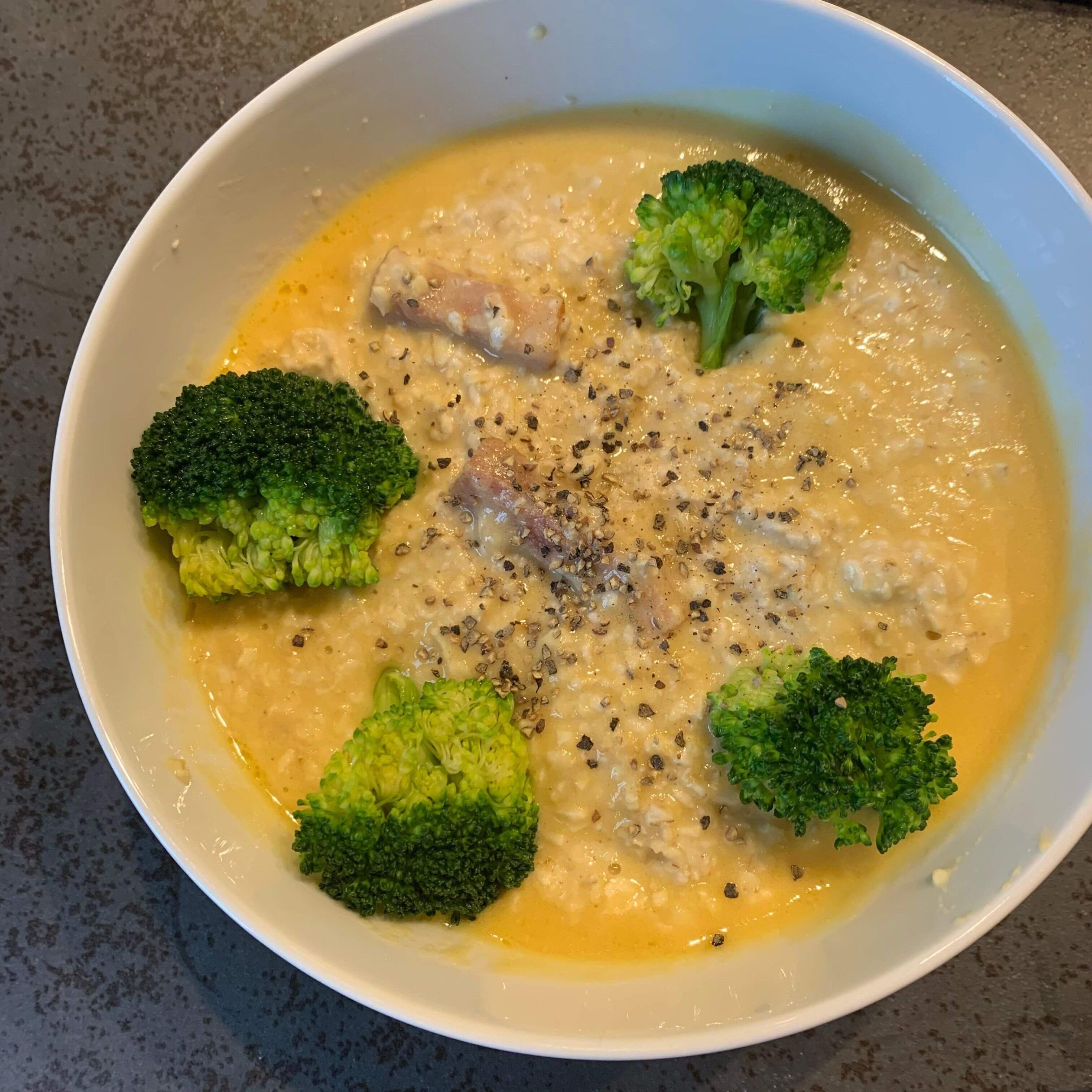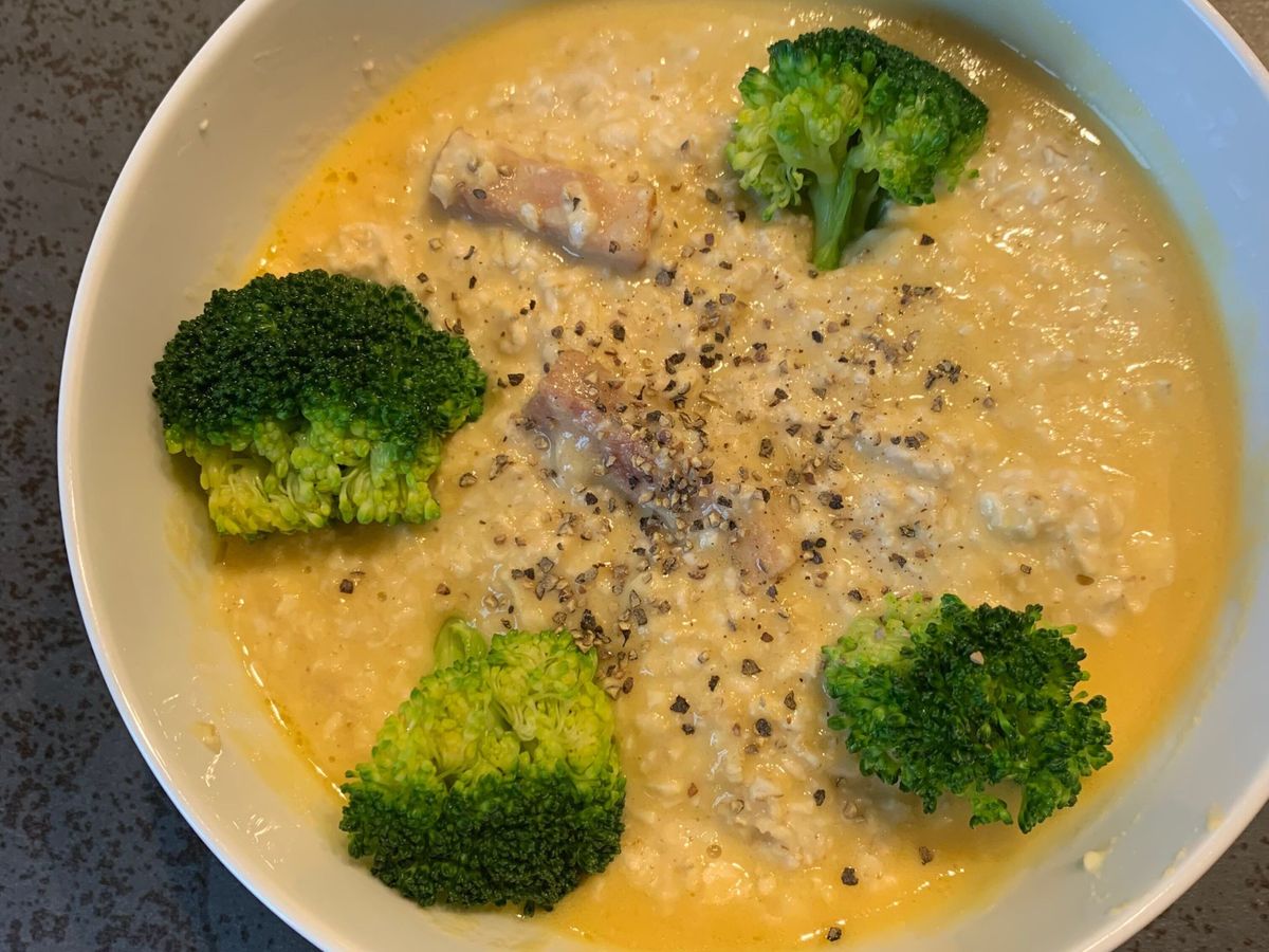 ベーコンも入っていて、十分な食べ応えではありますが、ブロッコリーも乗せてみました。