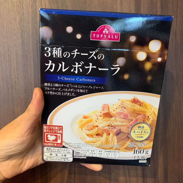 「トップバリュ 3種のチーズのカルボナーラ」は、1人前160g入り、213円。