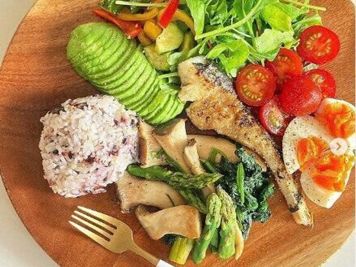 PFCバランスが取れた食事をとることはダイエットの基本。でも、ちょっとむずかしそう?それなら、ダイエット成功者がつくるメニューを真似することから始めてもいいかも。今朝のメニューは、ベビーリーフ、パプリカ、きゅうり、ミニトマト、アスパラ、アボカド、真タラ、ほうれん草、エリンギ、ゆで卵、十五穀米おにぎり95gです。ワンプレートに盛りつけると、野菜やタンパク質、炭水化物がこれくらいの割合なんだなあということがわかりやすいですよね。