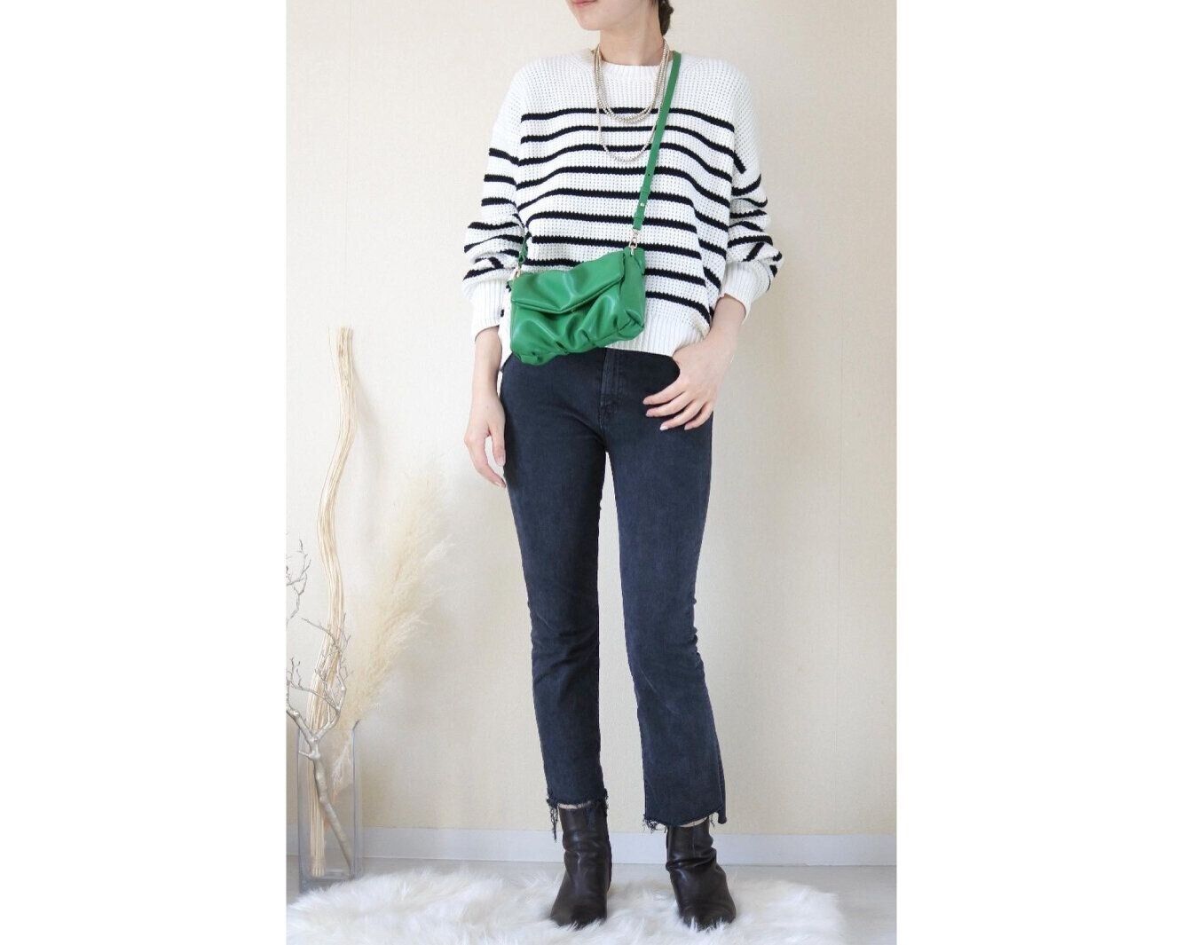 どうしても黒やネイビーが多くなる冬ですが白地のボーダーを選べばぱっと明るい印象になりますね。