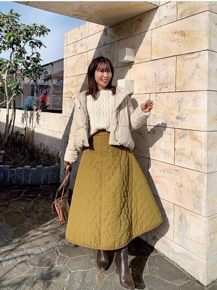 フレアスカートの広がりがきれいに見えるショート丈のダウンでオシャレ×防寒を両立。ZOZOTOWNで展開する「apretro(アプレトロ)」の「エコダウンブルゾン/4.950円」なら、コスパよくトレンドライクなコーディネートが叶います。スカートも、ハリ感が残せるキルティング素材で季節感を後押し!