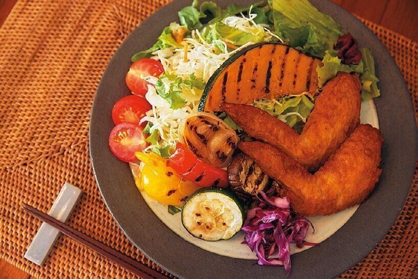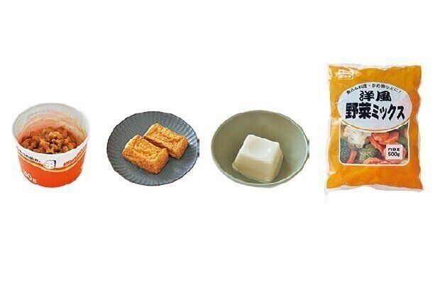 「野菜のプレートに加えるために、業スーの冷凍野菜ミックスや、豆腐、厚揚げ、納豆などは常に切らさずストックしています」。