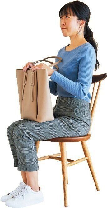 1 バッグをひざにのせておなかを隠し、左右の内ももを締める。