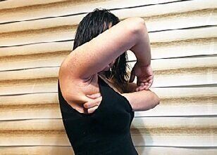 壁の前に立ち、腕を伸ばして体を倒し、壁に両手の指先をつけて壁を軽く押します。