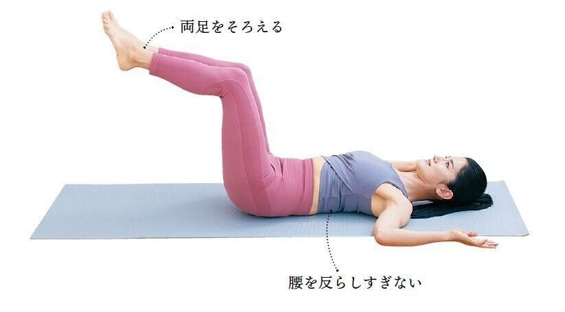 足で宙に四角を描くことで、下腹全体をトレーニング。ぽっこり下っ腹に引き締め効果が。