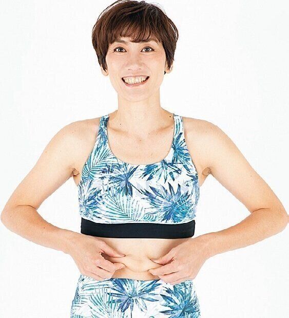 「お腹のお肉を集め、5本の指でつまんで上下にぷるぷる動かすだけ。仕上げにつまんだ部分を、つまんだお肉がなくなるまで伸ばしましょう」。