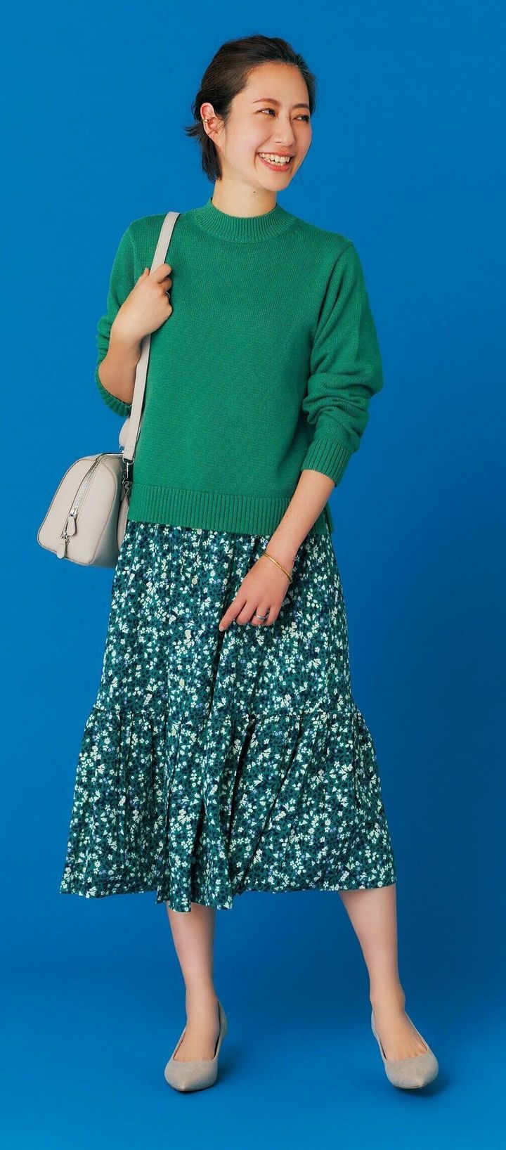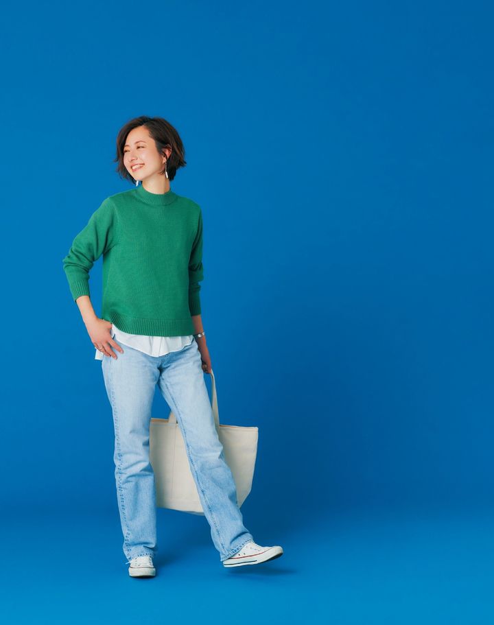新しく服を買うときは「3コーデ組めるか考えてから」が鉄則。今40代が買うべきユニクロの名品と、その着回し術を林智子さんが伝授。今回は今買って春まで使えるニットがテーマです。鮮やかなグリーンは主役にも差し色にも◎。