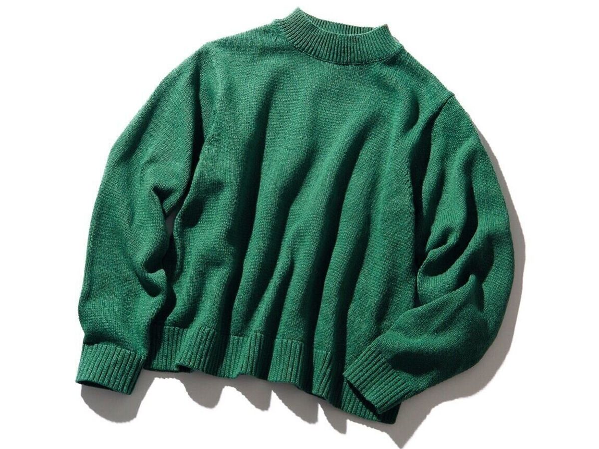 春気分を先取りできる発色のいいグリーンの春ニット。中に防寒インナーを着れば真冬にも対応可能です。「ウォッシャブルモックネックセーター」(グリーン、オフホワイト、ネイビー・全3色)/ユニクロ
