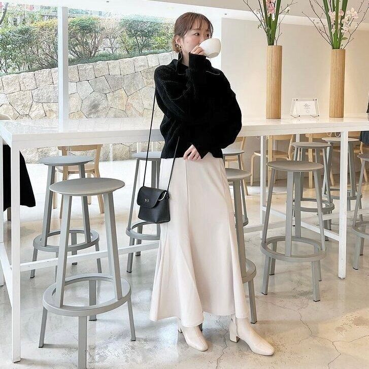 今年はプリーツスカートよりも、細身ながらも裾に向かって広がるマーメイドスカートが大豊作!GUの「カットソーマーメイドロングスカート/1,990円」は、伸縮性の高いカットソー素材で気軽に着ることができる1枚。着るだけでレディな雰囲気へと導いてくれます。