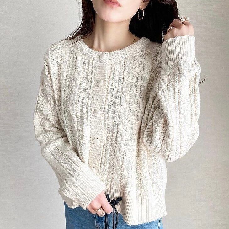- 2.くるみボタンがかわいい「ケーブルカーディガン」