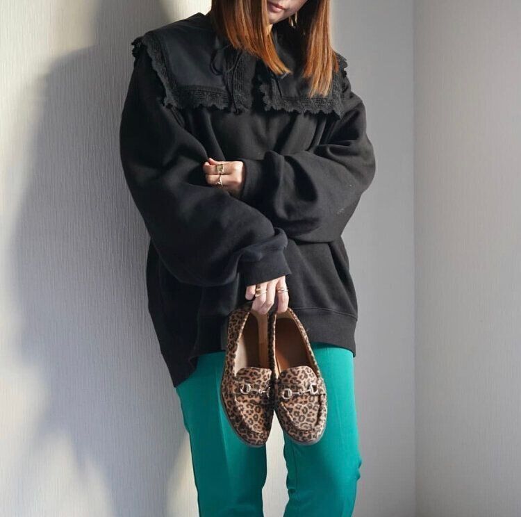 着やせ効果を取り入れたいならオーバーサイズのスウェットがオススメ。