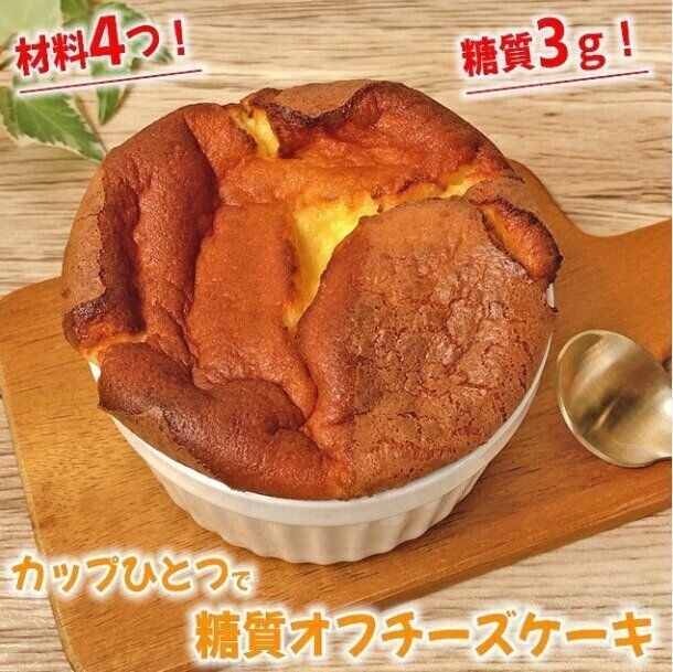おひとり様サイズ、小麦粉を使わない低糖質バスクチーズケーキです。つくり方もびっくりするほど簡単。耐熱容器にkiriのクリームチーズ3個(54g)を入れて、500wの電子レンジで30秒ほど加熱しやわらかくしておきます。そこにラカント大さじ2をくわえてよく混ぜ、生クリーム大さじ2を、2回に分けて混ぜながら加えます。最後に卵1個を入れて混ぜたら、200度に予熱したオーブンで30分ほど焼きます。粗熱をとったらラップをかけて冷蔵庫で1時間ほど冷やせばできあがり!