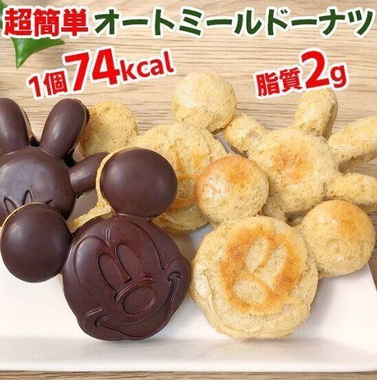 こちらは子どもたちも大喜びのオートミールドーナツです。まずはオートミール60gをブレンダーやミルで粉砕します。ボウルにバナナ1本(約100g)を入れてフォークなどでトロトロになるまでつぶします。そこへ粉砕したオートミール、ラカント10g、卵1個、牛乳45g、ベーキングパウダー5gを入れてよく混ぜます。ダイソーで売っているキャラクターのシリコン型に生地を流し込み、180度に予熱したオーブンで約20分焼いたらできあがり。チョコレートバージョンは、低糖質チョコレートがおすすめ。チョコレートをとかして先ほどのシリコン型に少し流し込みます。さきほどのドーナツを上からそっと置き、チョコレートが固まるまで冷蔵庫で冷やせばできあがり。バナナの優しい味とオートミールの香ばしさがマッチ。子どもたちも大喜びのヘルシースイーツです。