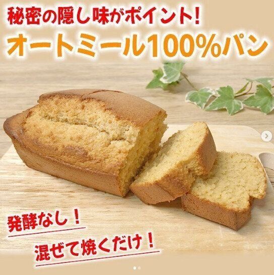 ダイエット中でも、こんなおいしいパンが食べられる!こちらは発酵なし、混ぜて焼くだけのオートミール100%パンです。おいしさの秘密は隠し味の味噌。つくり方です。ミキサーやブレンダーを用意し、オートミール100g、ラカント30g、卵1個、牛乳100ml、電子レンジで溶かした無塩バター20g、味噌18g、ベーキングパウダー6gを入れてしっかりと混ぜます。パウンドケーキ型を用意して内側に油を塗るか、クッキングシートをしいて生地をいれます。180度に予熱したオーブンで35分ほど焼いたら、ふっくらとふくらんだ、香ばしい香りのパンができあがり。隠し味の味噌の香ばしさと甘じょっぱさがクセになるおいしさです。