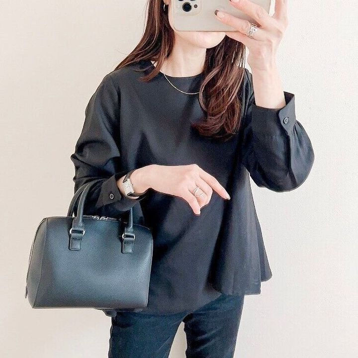 最近、あなどれないのがユニクロのバッグ類。「レザータッチ2WAY ボストンバッグ/2,990円」は、コンパクトなサイズでボリュームあるトップスと合わせても好相性。ミニマルなルックスなので、きちんとシーンに携えるハンドバッグとしてもぴったりです。注目すべきは、収納力!マチが広いボストン型のバッグなので、飲み物のボトルや長財布まで収納することできます。軽いバッグなので、“バッグ2個持ち”になるシーンでも活躍できます。
