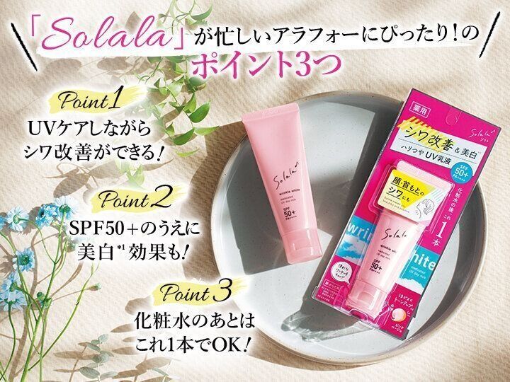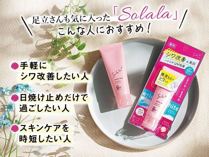 忙しくても前向きでありたい女性の笑顔を応援するスキンケアブランド「Solala(ソララ)」が誕生! 肌に自信が持てるUV乳液を、4児のママでも綺麗を保つ美容好き・サンキュ!読者モデルの足立さんがお試し。早速「気に入りました♪」のワケは?