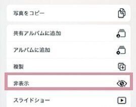 (2)左下の↑を押して、非表示のボタンを押す→非公開アルバムに写真が移動!