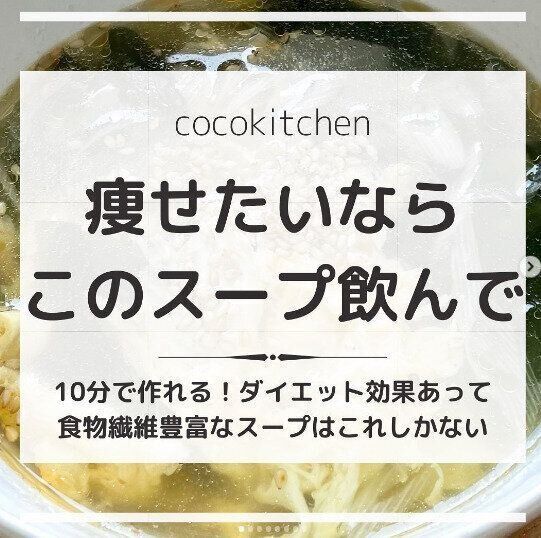 食物繊維豊富でしかもおいしいワカメスープを飲んで毎日のダイエットを楽しく乗り越えましょう。材料は、乾燥ワカメとネギです。鶏がらスープの素と醤油で味をととのえて、とき卵を流し入れます。仕上げはごま油とラー油をお好みで。ここに豆腐やキノコを入れるのもおすすめです。今日はつかれて自炊は無理…そんなときのためにも、調理法や材料もシンプルな、こういったヘルシーレシピをたくさんものにしていきたいですね!