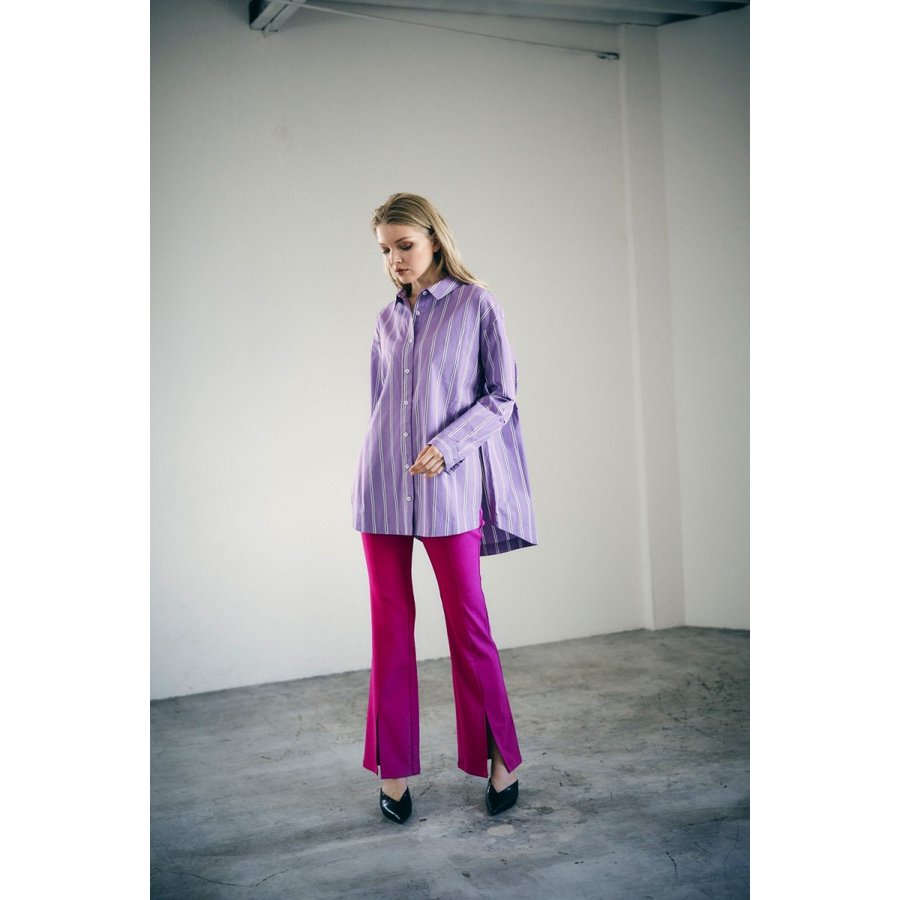 パープル系のストライプシャツ