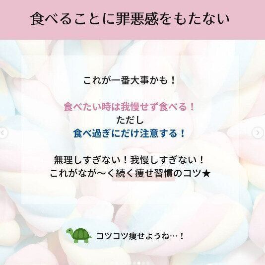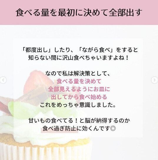 ダイエット中の悩みで多いのが、甘い物を我慢できないという悩み。甘いものが大好きな過去をもったmaho_uno_itoさんだからこそ、参考にしたい内容ばかりでした。産後ママには無理は禁物。ゆっくりとよい習慣を身につけていきましょう。