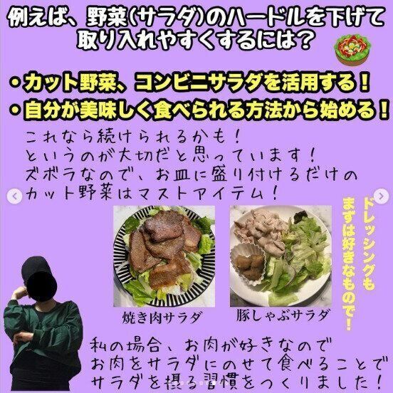 ダイエットといえばまずやることは「食事の改善」とよく言われますよね。しかし、カップ麺や揚げ物、食べ放題やバイキングが大好きだったyurimama_dietさんにとって、じつはこの「食事の改善」がもっともハードルの高いものでした。スムージーに生野菜、鶏むね肉にオートミール…。ダイエッターさんたちが取り入れていることも多い食材ですが、yurimama_dietさんは、「自分には無理だ。絶対に続かない!」と冷静に自己分析。