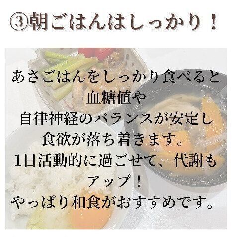 cure_itoshimaさんも朝ごはんはしっかりと食べます。血糖値や、自律神経のバランスが安定し、食欲が落ち着くのだそう。1日が活動的に過ごせて、代謝アップにもつながるのだとか。メニューは、和食がおすすめなのだそうですよ。