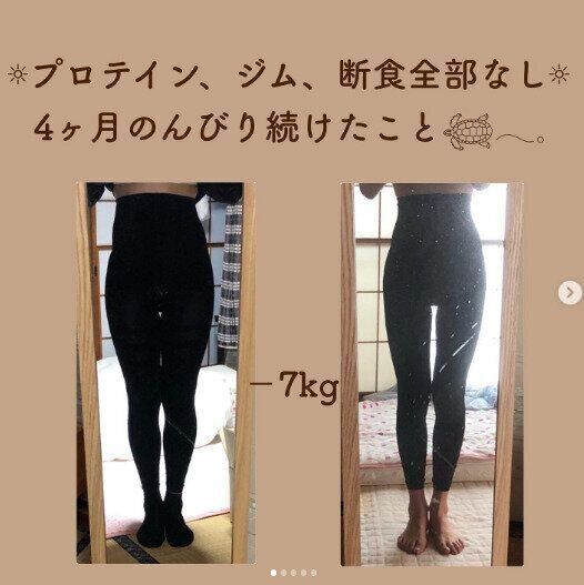こちらが4カ月間のビフォーアフターの写真。-7kgという減量の結果、下半身はすっきり!まさに美ボディですね!