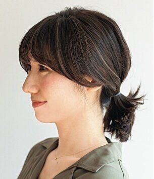 髪を結んだ時に、横顔が寂しい印象になりがちなら、サイドバングを作るのがおすすめです。毛先をカールさせて、ニュアンスを出せば、おしゃれ度アップ!