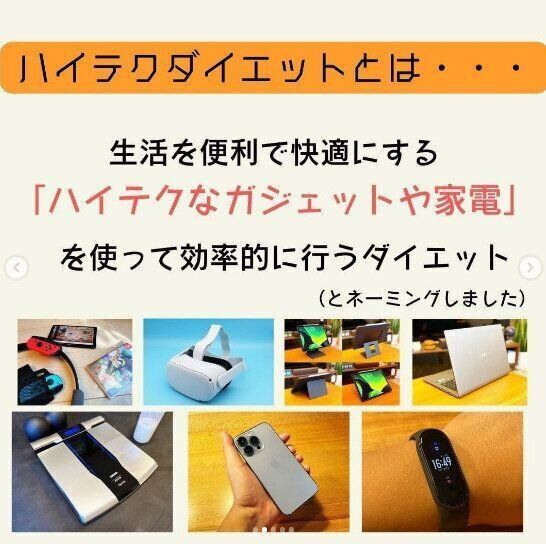 じつは、e_slat_namekoさんは、生活を便利にしてくれるガジェットや家電をうまく使い、効率的にダイエットを行っています。食事の記録や自分の姿を撮影するためのスマホやパソコン。万歩計、心拍数などもはかれるスマートウォッチなど。他にも、ボクシングやヨガなどにVRヘッドセット、ゲームをしながら運動するためのゲームソフトなど。