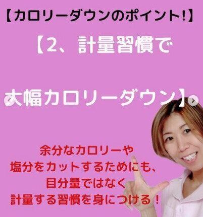 カロリーダウンのポイント、その次は「調味料を計量をする習慣を身につける」こと。料理のとき、適当に調味料を入れていませんか?余分なカロリーや塩分をカットするためにも、料理をするときは目分量ではなく計量をする習慣を身につけましょう。