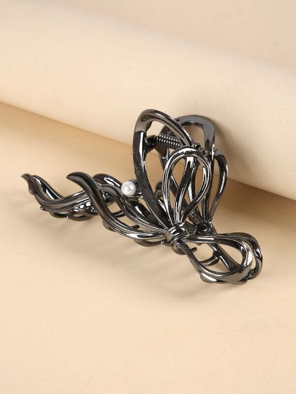 人工パールデコレーション 蝶々結びデザイン ヘアツメ
