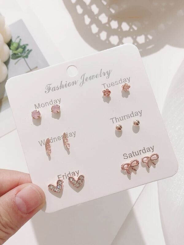 スタッドイヤリング ラインストーンデコレーション 6ペア