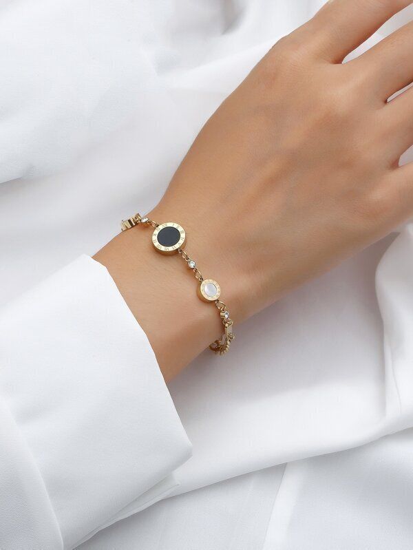 14kゴールドメッキ ローマ数字 ディティール ラウンドデコレーション ブレスレット