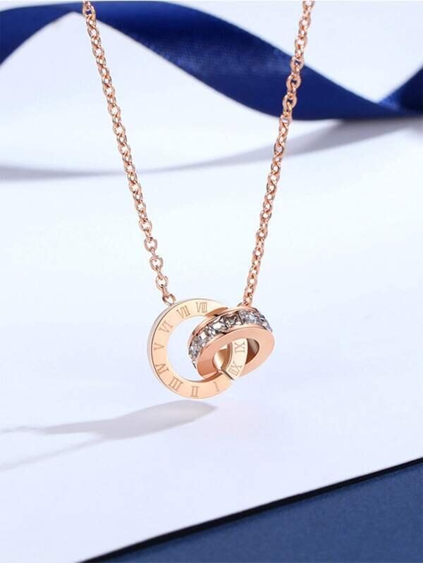 ゴールドメッキ ジルコン 円形 チャームネックレス