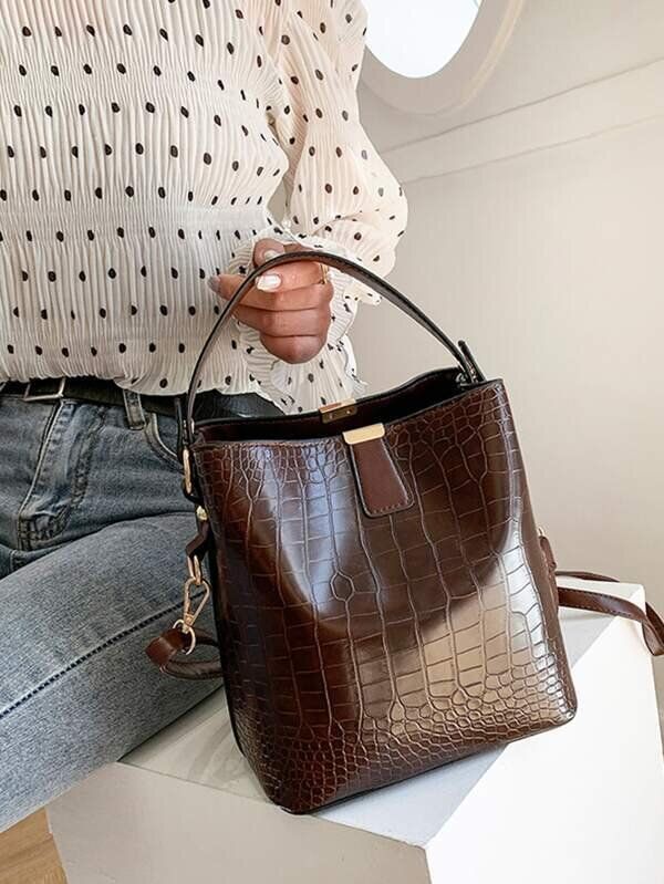 バケットバッグ スパイクデコレーション クロコダイル エンボス