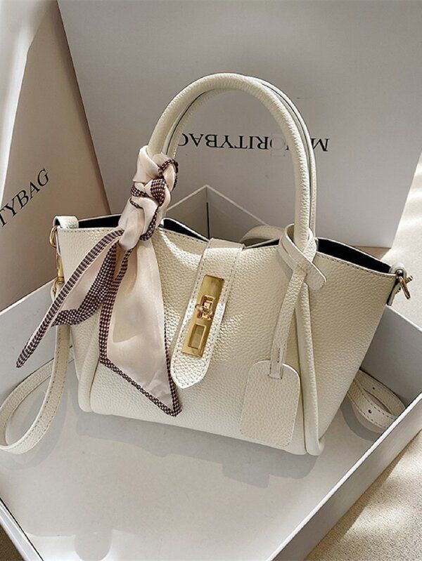 ツイリースカーフデコレーション ペブルエンボス バックル トートバッグ