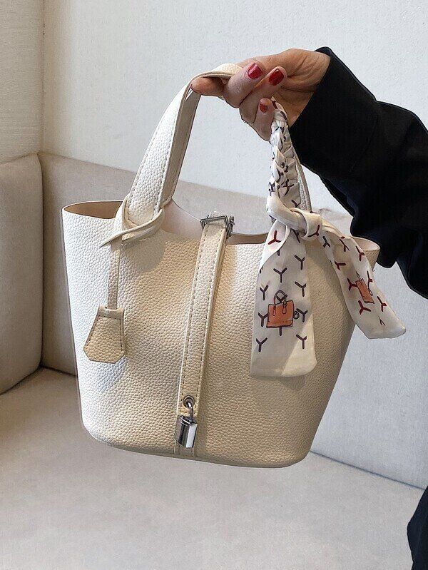 ツイリースカーフデコレーション 付き インナーパウチ バケットバッグ
