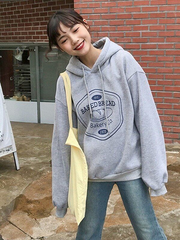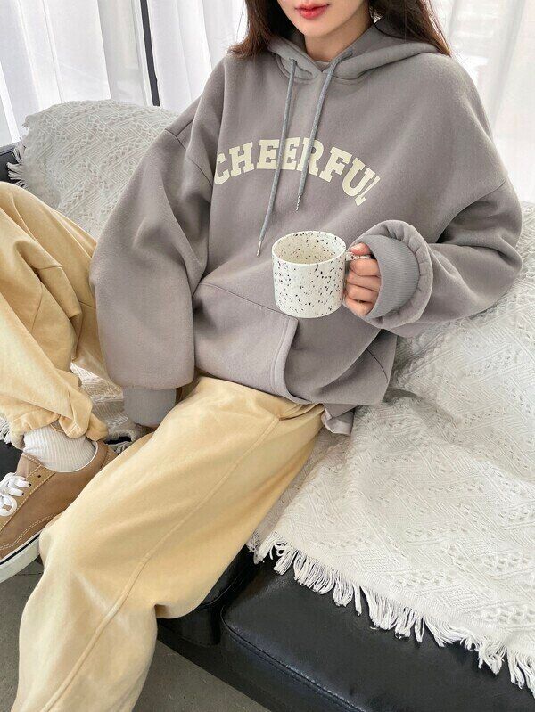 DAZY スローガングラフィック ドロップショルダー ドローストリング パーカー
