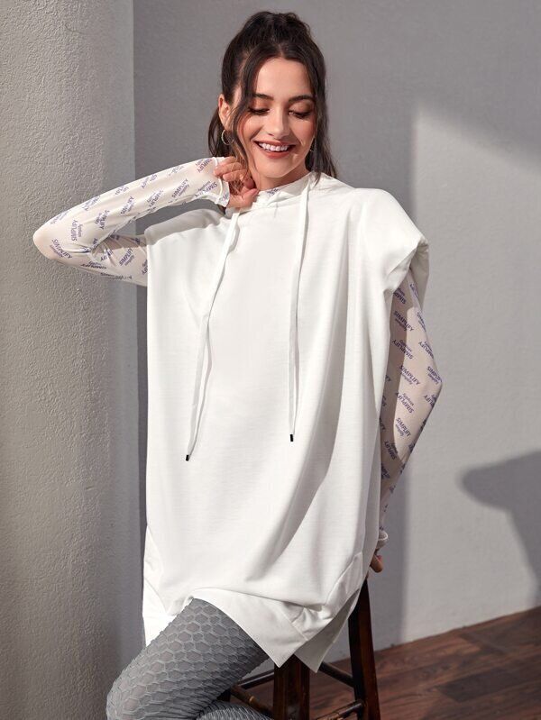 ショルダーパッド スプリットヘム ドローストリング パーカー